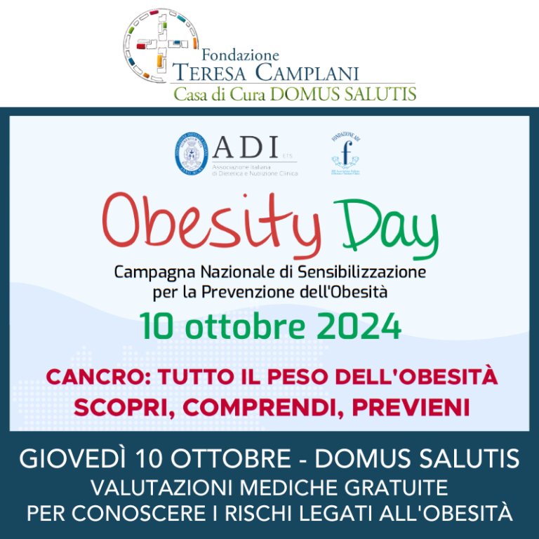 10 ottobre: Obesity Day. In Domus 9 valutazioni mediche gratuite per conoscere i rischi legati all'obesità