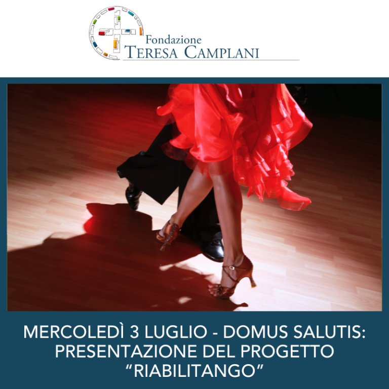 Mercoledì 3 Luglio alle ore 16 presso la Sala Convegni della Domus Salutis verrà presentato il progetto “Riabilitango”, che prenderà avvio il prossimo settembre presso le Palestre della struttura.