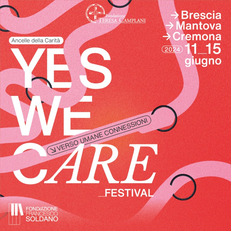 Incontro, sguardo, presenza. Attorno a queste parole chiave, le tre città dove la Fondazione Teresa Camplani opera quotidianamente- Brescia, Mantova e Cremona- saranno teatro di una serie di eventi dal taglio eclettico e multiforme: Yes We Care_Festival rappresenta un’occasione unica per celebrare e raccontare i valori che la Fondazione Teresa Camplani storicamente incarna, attraverso la potenza emotiva e comunicativa delle arti.
