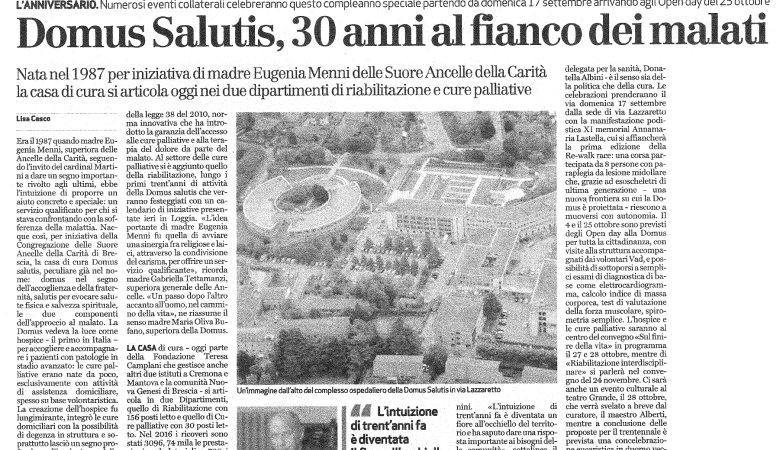 Domus Salutis, 30 anni al fianco dei malati